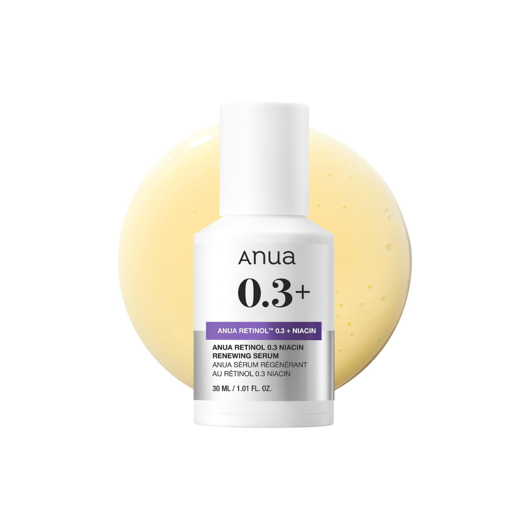 ANUA Retinol 0.3% + Niacin Renewing Serum is a skin-renewing formula designed to smooth, brighten, and refine. With 0.3% Retinol to improve texture and elasticity, and Niacinamide to minimize dark spots and balance tone, it delivers visible radiance. A blend of Ceramides, Hyaluronic Acid, and Squalane provides lasting hydration and barrier care, while Peptides and soothing botanical extracts support firmer, healthier-looking skin.
