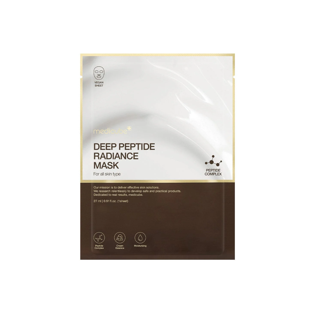 MEDICUBE Deep Peptide Radiance Mask is a nourishing facial mask designed to enhance skin's radiance and texture. Packed with Niacinamide for brightening and Centella Asiatica for calming, it also includes a potent blend of peptides like Acetyl Hexapeptide-1 and Palmitoyl Tripeptide-5 to boost collagen production and firm the skin. Hyaluronic Acid and Ceramide deeply hydrate and strengthen the skin barrier. This mask is perfect for revitalizing and adding a youthful glow to tired skin.