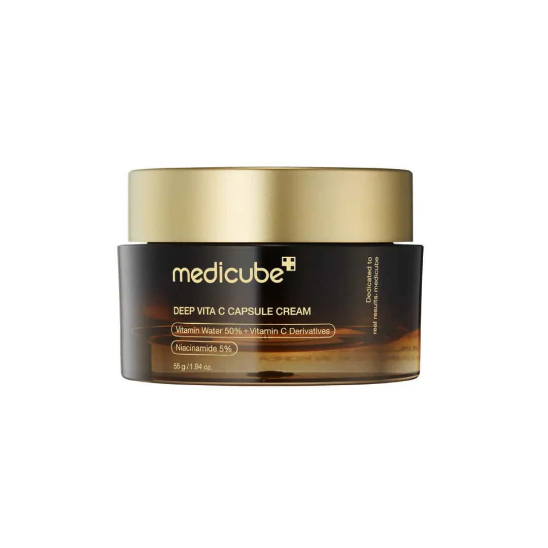 MEDICUBE Deep Vita C Capsule Cream is a powerful brightening cream enriched with stabilized Vitamin C derivatives and Hippophae Rhamnoides Water. This formulation intensely hydrates, improves skin tone, and boosts radiance. It also features Niacinamide, Alpha-Arbutin, and Ferulic Acid, which target dullness, uneven skin tone, and pigmentation while promoting collagen production for firmer skin. Ingredients like Sodium Hyaluronate and Vitamin E deeply hydrate and protect the skin barrier. Ideal for anyone seeking a glowing, smooth, and revitalized complexion.