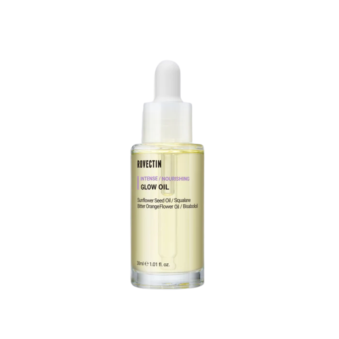 ROVECTIN Intense Glow Oil is a luxurious facial oil designed to deeply nourish and enhance skin radiance. It blends a rich mix of natural oils including Sunflower Seed, Camellia, and Olive oils, which provide essential fatty acids and antioxidants to the skin. Squalane and Sea Buckthorn Oil help to moisturize and repair skin barriers, promoting a healthy glow. The addition of Bisabolol and Chamomile Flower Oil calms and soothes, making it perfect for sensitive skin. This oil absorbs quickly, leaving the skin soft, supple, and glowing without a greasy residue. Ideal for those seeking a natural boost to their skincare regimen.