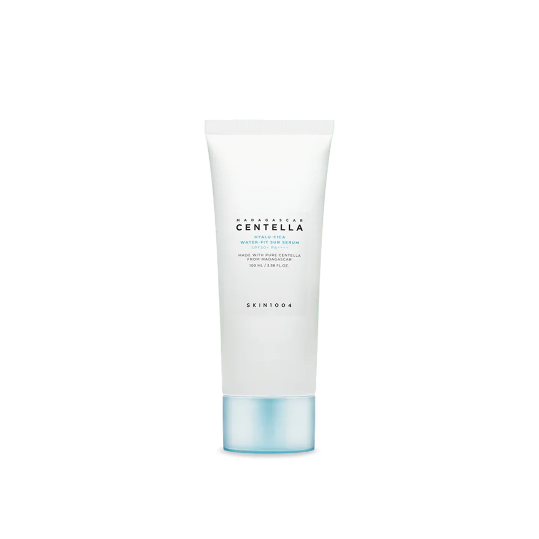 SKIN1004 Madagascar Centella Hyalu-Cica Water-Fit Sun Serum is a lightweight, hydrating sunscreen with SPF50+ PA++++ that offers strong protection against UVA and UVB rays. Infused with Centella Asiatica Extract (9800ppm) to soothe and calm, and Hyaluronic Acid for deep hydration, it leaves skin feeling smooth and refreshed. Niacinamide brightens and evens skin tone, while antioxidant-rich botanical extracts promote overall skin health. Ideal for daily use, this non-greasy sun serum is perfect for all skin types, including sensitive and acne-prone skin.